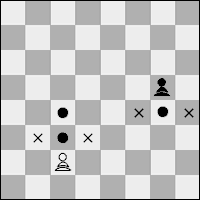 3.4. a) El peón se mueve hacia adelante a la casilla inmediatamente delante suyo en la misma columna, siempre que dicha casilla esté desocupada; o... b) en su primer movimiento, el peón puede avanzar dos casillas a lo largo de la misma columna, siempre que ambas casillas estén desocupadas; o... c) el peón se mueve a una casilla ocupada por una pieza del adversario que esté en diagonal delante suyo, sobre una columna adyacente, capturando dicha pieza.