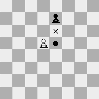 d) Un peón que ataca una casilla atravesada por un peón del adversario que ha avanzado dos casillas en un movimiento desde su casilla original, puede capturarlo como si sólo hubiera avanzado una casilla. Esta captura sólo puede efectuarse en el movimiento inmediatamente siguiente al citado avance y se denomina captura "al paso".
