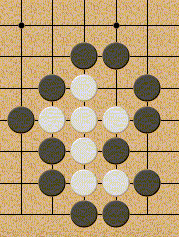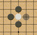 Captura de piedras Un grupo de piedras es capturado cuando no tiene ninguna libertad, es decir, cuando es rodeado totalmente por piedras del jugador rival sin que el grupo de piedras capturado tenga ningún hueco libre en su interior.